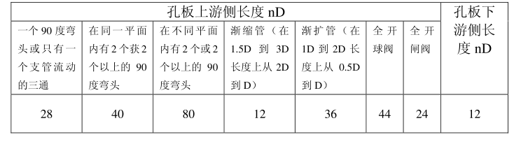 ?。?) 孔板上下游所需直管長(zhǎng)度不得小于以下要求: