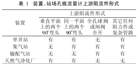 孔板流量計(jì)上游阻流件形式,見表1。