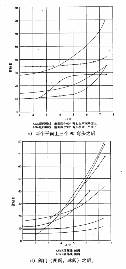 在現場各類阻流件串聯使用是一個普遍的問題,如何界定影響節流裝置的阻流件是煩人的問題,例如在需要較長直管段長度的阻流件之間插入一種必要直管段長度較短的阻流件,如何估算需要的長度呢?新標準在這方面有比較明確的規定,并且舉實例說明。