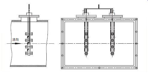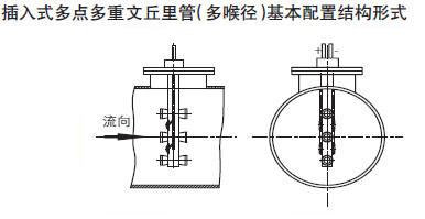 根據其插入點數的不同分為單點多喉徑流量測量裝置和多點多喉徑流量測量裝置兩種結構。結構圖如下: