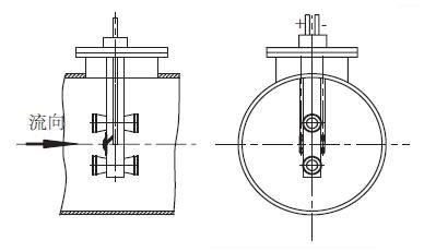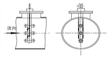 2. 確定安裝位置后,按要求沿管道軸線方向開一個(或多個方孔),再將法蘭安放到大管道矩形長方孔上并焊接,施焊時注意法蘭盤對稱軸與管道軸線平行,并確保插入式多喉徑插入管道中心處,或通過并垂直管道中心軸線,其全壓測量管必須正對流速方向。
